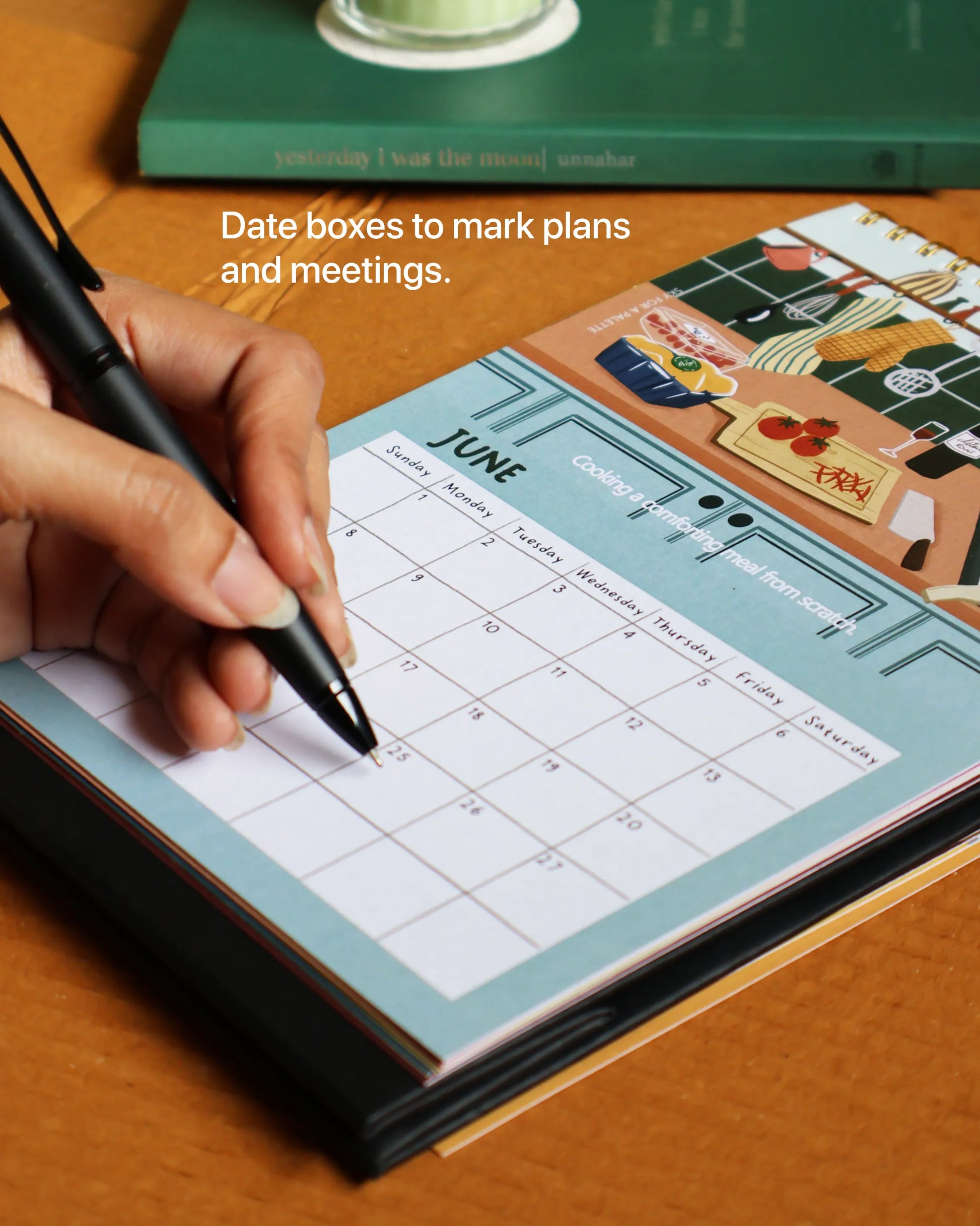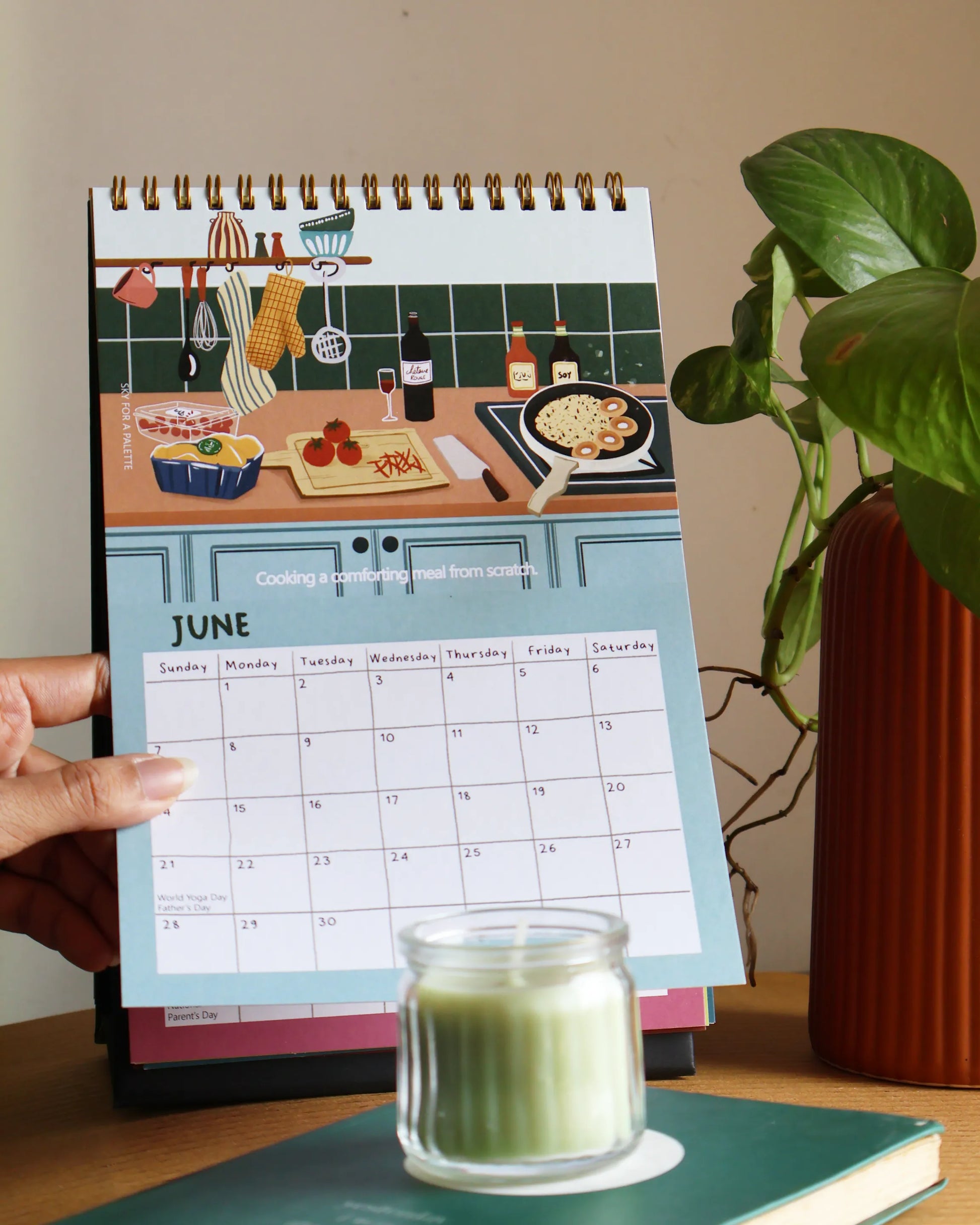 Each month features an original illustration capturing a simple moment to look forward to, moments we often experience but overlook : like admiring a rainbow, cooking a meal from scratch or taking a nature walk. These moments may be ordinary, but they hold the gentle magic to brighten your day.